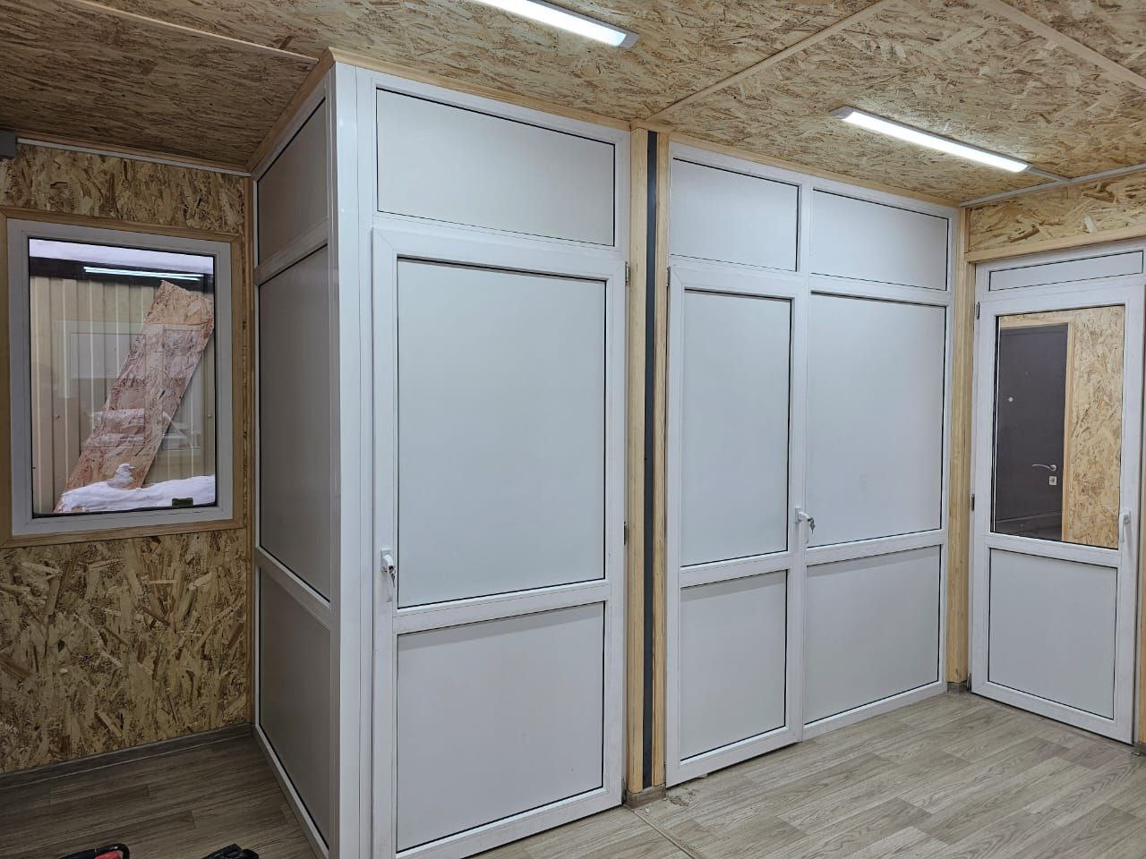 - Внутренняя отделка: утеплитель 100 мм, ПВХ панели (вагонка, имитация бруса)