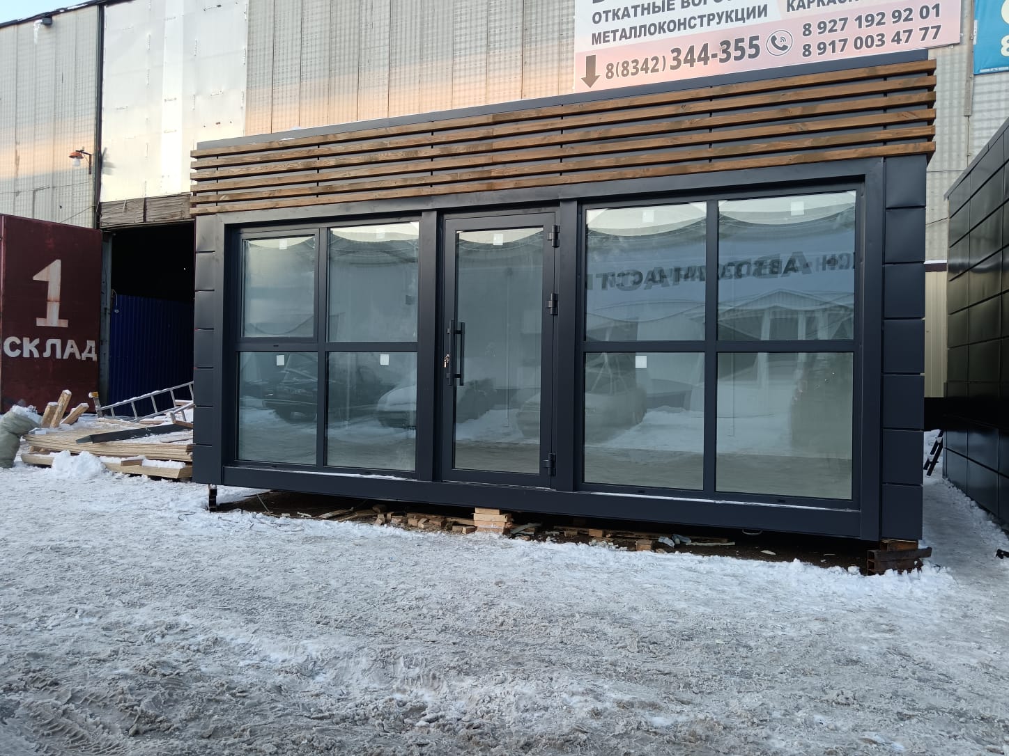 Это самостоятельное строение ,предназначенное для осуществления коммерческой деятельности ,имеющее торговый зал и помещение для хранения .Павильон состоит из стального каркаса , с заполнением утеплителя 100 мм для круглогодичного использования ,облицовкой из металлокасет и алюминиевых ветражных конструкций.Предусмотрено место для рекламы.
